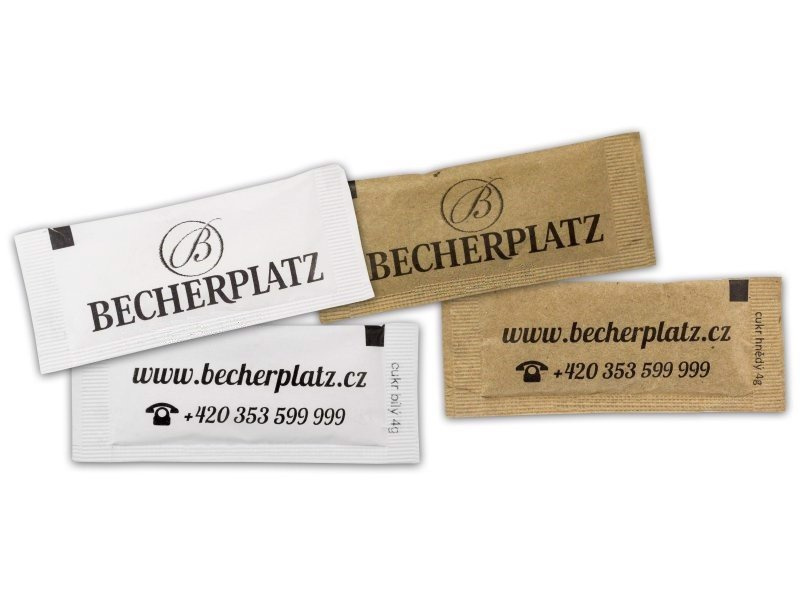 The possibilities for printing promotional packaged sugar are almost limitless. We do full color printing of promotional packaged sugar, can print a color image on promotional corporate sugar, or print a black and white version of promotional corporate packaged sugar. Send an enquiry, make an enquiry or order online in the shop.