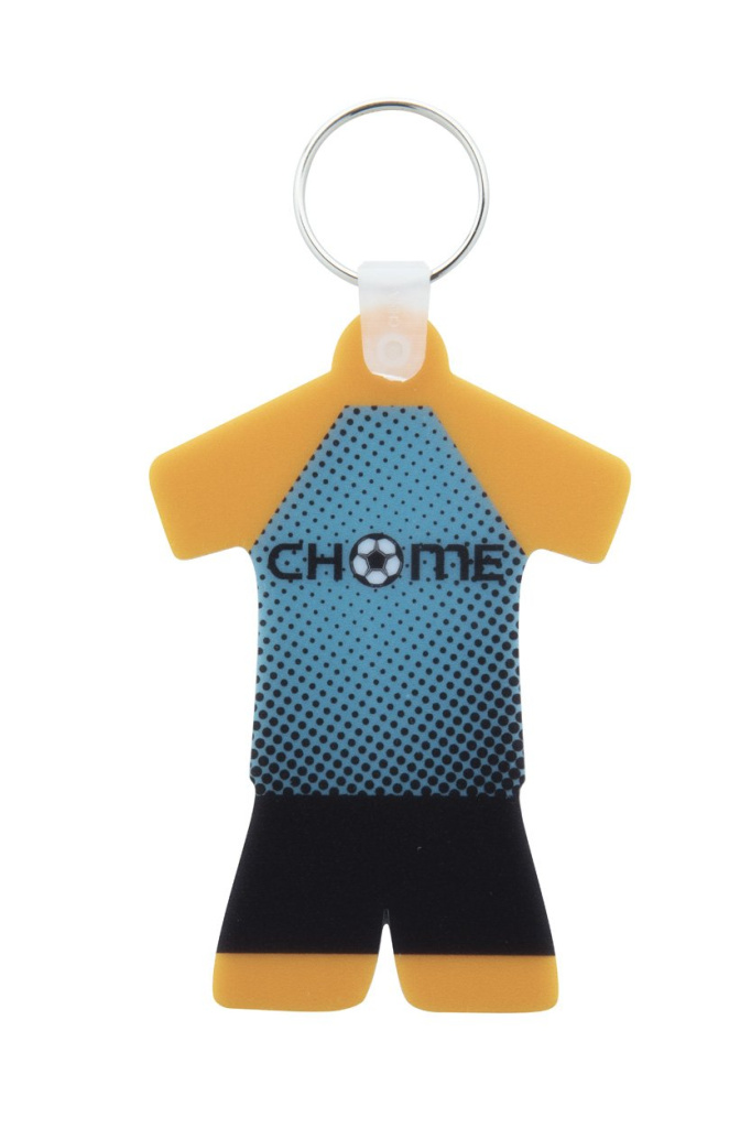 Sport dress shaped plastic keyring with full colour printing on both sides. Price includes UV LED printing. MOQ: 100 pcs. More information